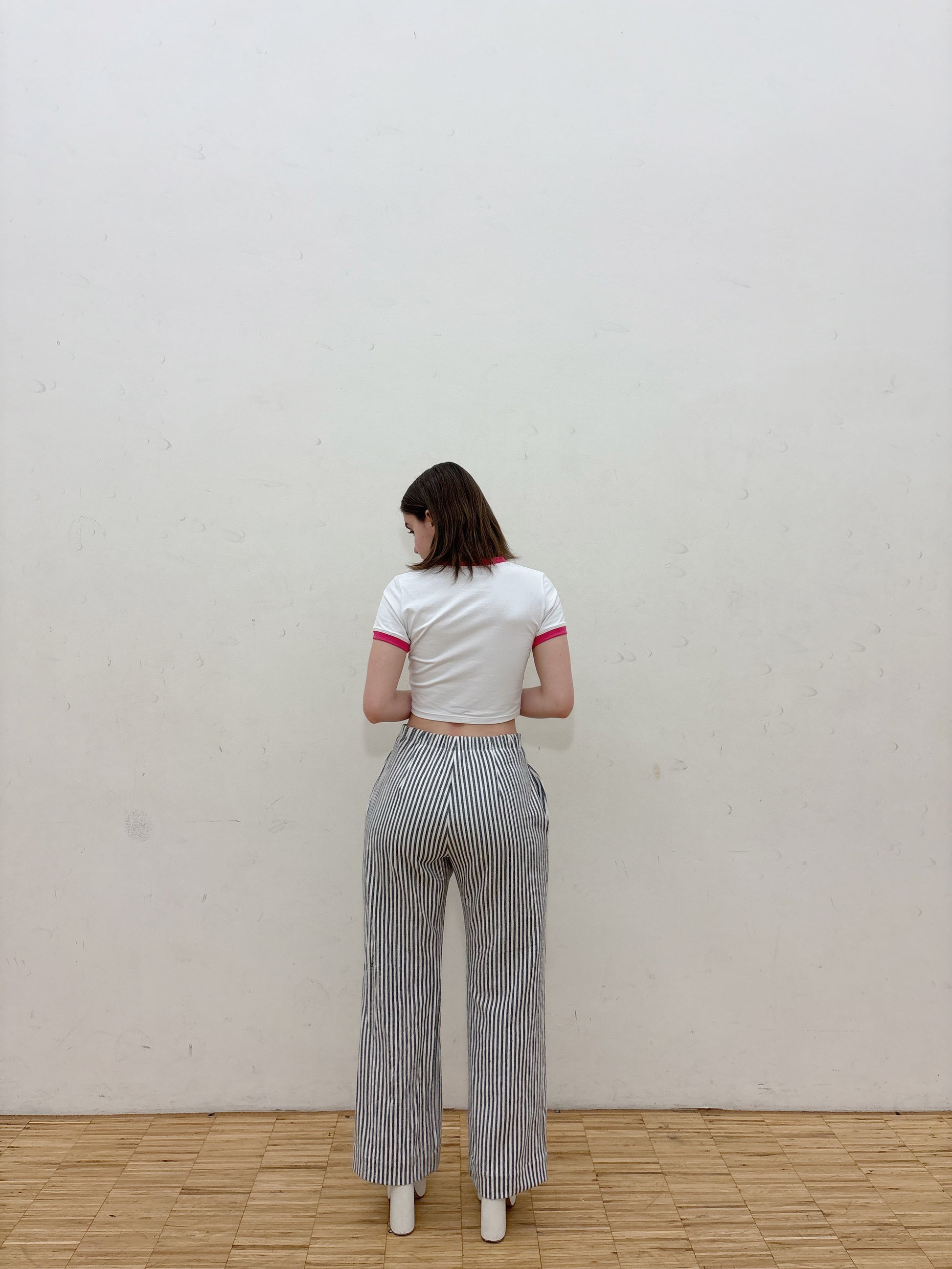 Relaxed, flattering, and effortlessly cool, the Marlowe Pants are designed to be your everyday go-to with a playful twist. Sitting comfortably at the waist with a tailored yet easy silhouette, they drape beautifully through the leg for a look that feels both polished and laid-back. The subtle stripe pattern adds just the right amount of visual interest, making them easy to style while still standing out.